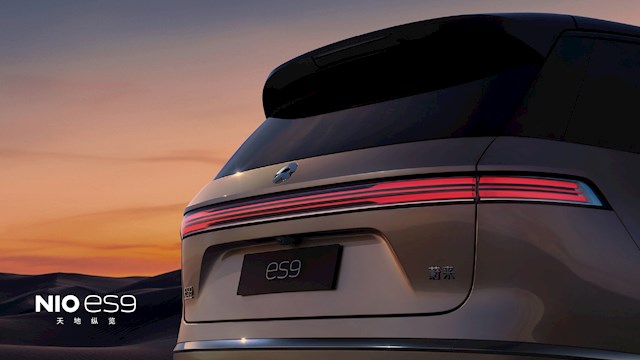 ES9延续了蔚来最新家族化的设计语言,车头棱角分明,分体大灯主体部分定然为矩阵式,不过目测并未配备ES8同款巨大的前备舱,车顶依旧配备有三个犄角,位于中间的是激光雷达,左右两侧则为高清摄像头。