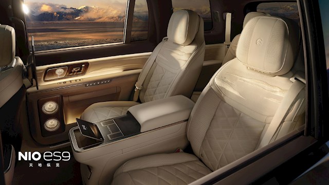 内饰部分,环抱式座舱里配有Skyline天际线屏幕,预计配备与ET9相同的15.6英寸AMOLED悬浮式中控屏,内置SkyOS·天枢整车全域操作系统,涵盖车控、智驾、座舱、移动互联等多个领域,此外,如NOMI Mate 3.0、车载压缩机冰箱等配置没有缺席。