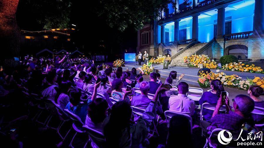 数百名市民游客陆续前来,现场很快座无虚席,静静等候着“素月弦歌”庭院音乐会的到来。作为“世遗生活 诗意琴岛”第十二届鼓浪屿诗会“诗乐和鸣”系列音乐会的重磅环节,这场音乐会当晚在这个百年古建的庭院里温情开唱。
