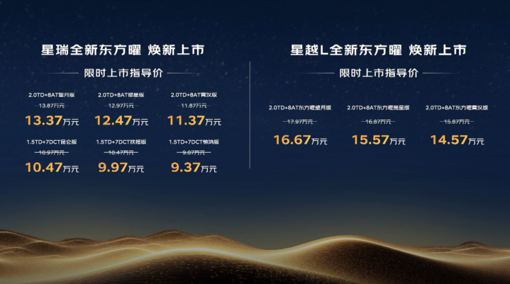 国庆到,吉利中国星全新东方曜系列为10-20万级燃油车市场注入东方美学新活力。此次推出的星瑞与星越L两大车型现货配资平台,限时指导价区间锁定9.37万至16.67万元,以“文化+科技”双核驱动,重新定义国产高端燃油车新标准。